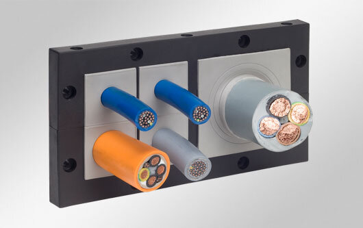 KT grommet based cable entry frames for supply cables with large diameters of up to 75 mm. Available as single or double row version.