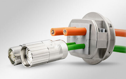 The modular interface system (MIS) is a split cable entry for cables with and without plugs in combination with industrial connectors 3A or 4A.